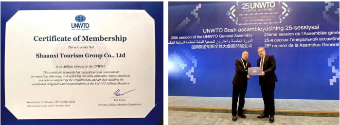2023年10月,陕旅加入联合国旅游组织。今年10月,我们回访联合国旅游组织总部,共谋丝路旅游推广,重启“丝绸之路特别行动计划”。